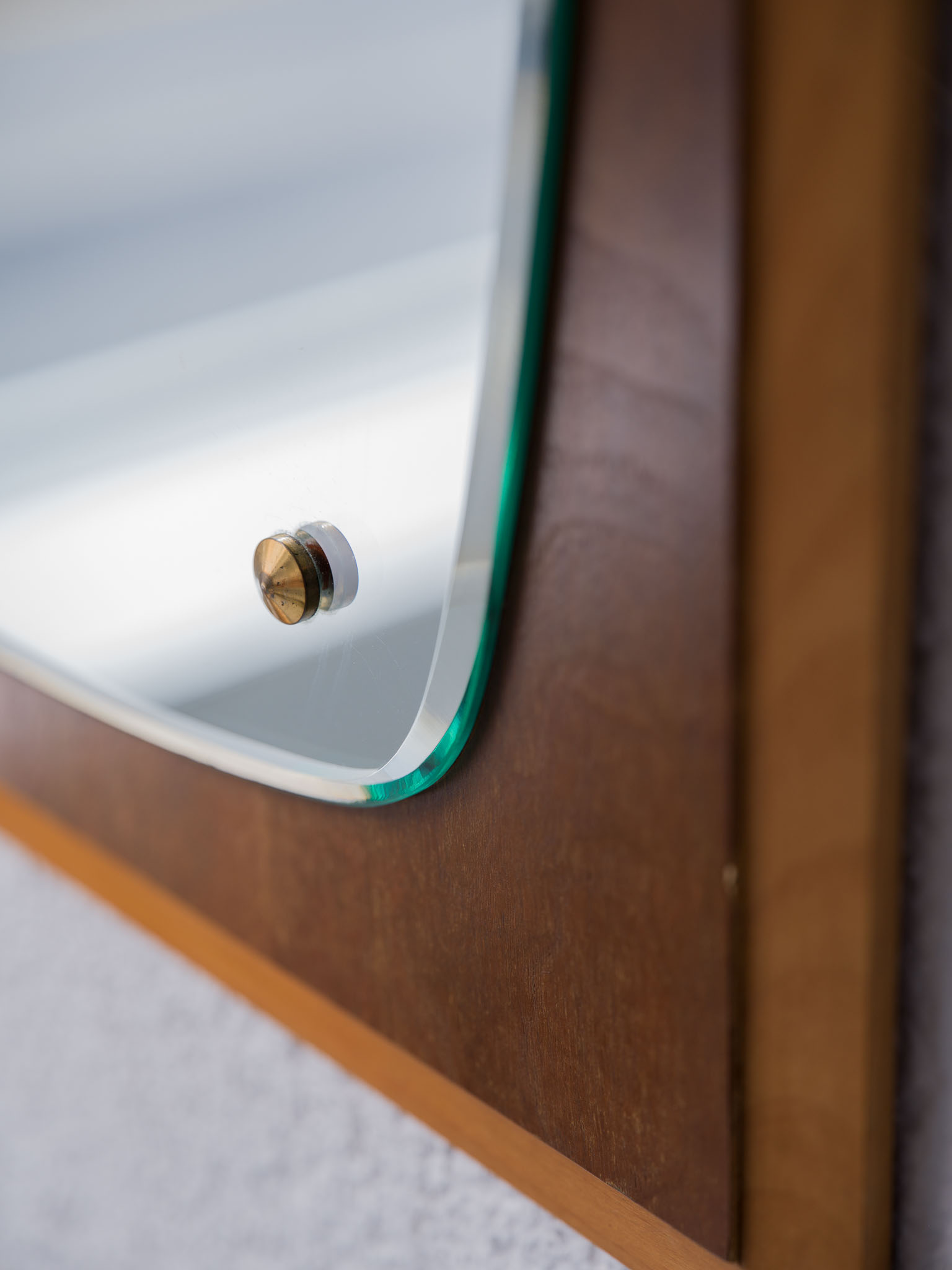 Facettierter Spiegel, Nussbaum- und Eichenholz Rahmen, 1960er Jahre.
