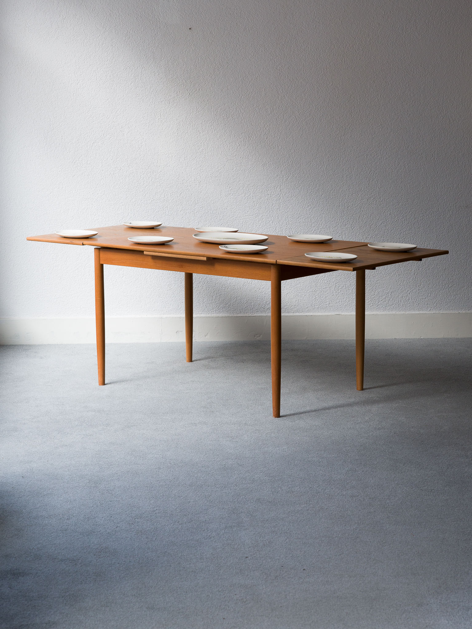 Skandinavischer Teak Tisch mit zwei Verlängerungen aus den 60er Jahren.
