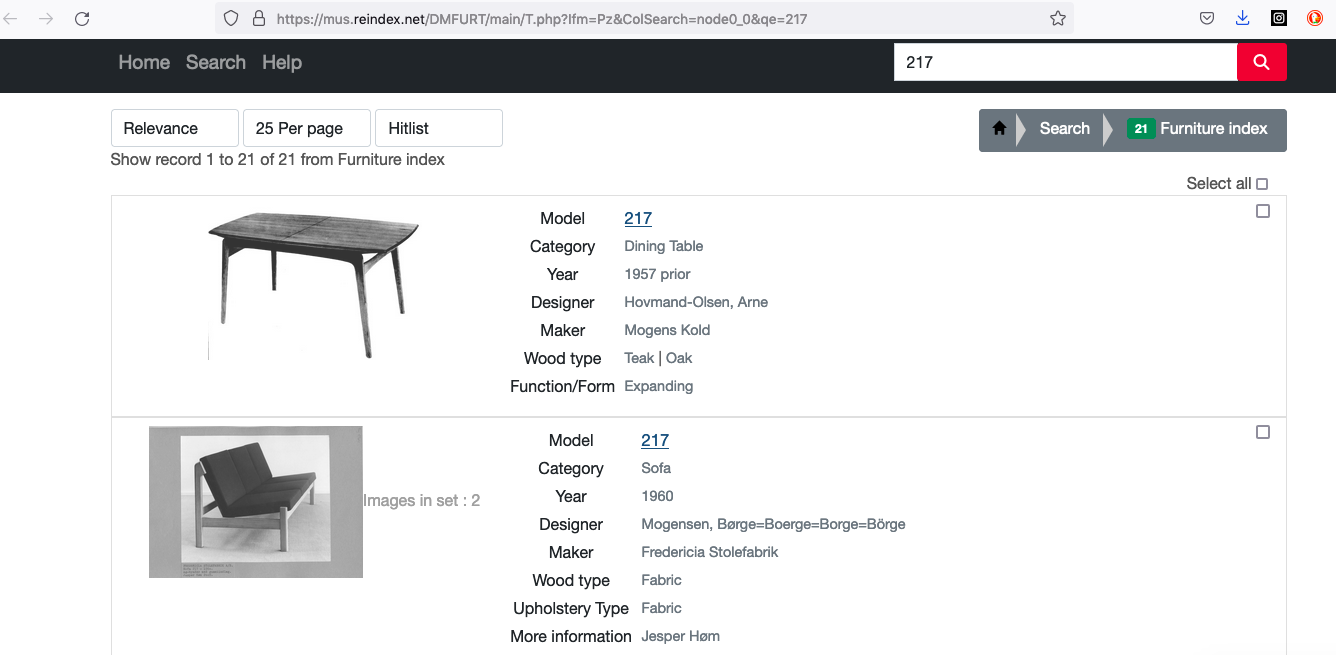 Listed in the Danish Design Museum database in Copenhagen, number 217.