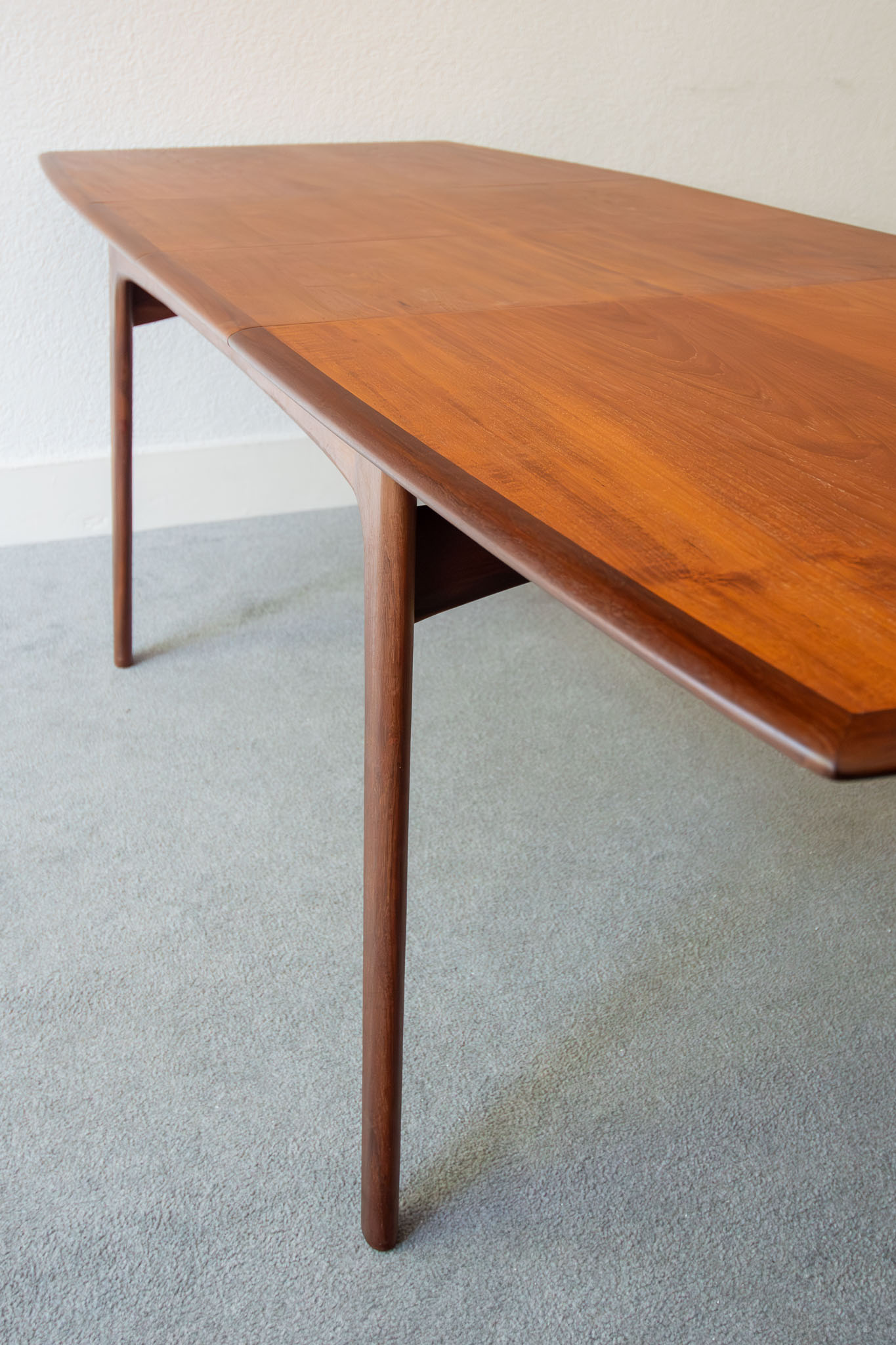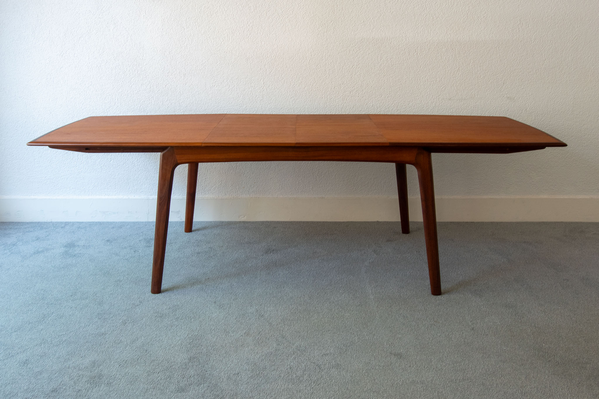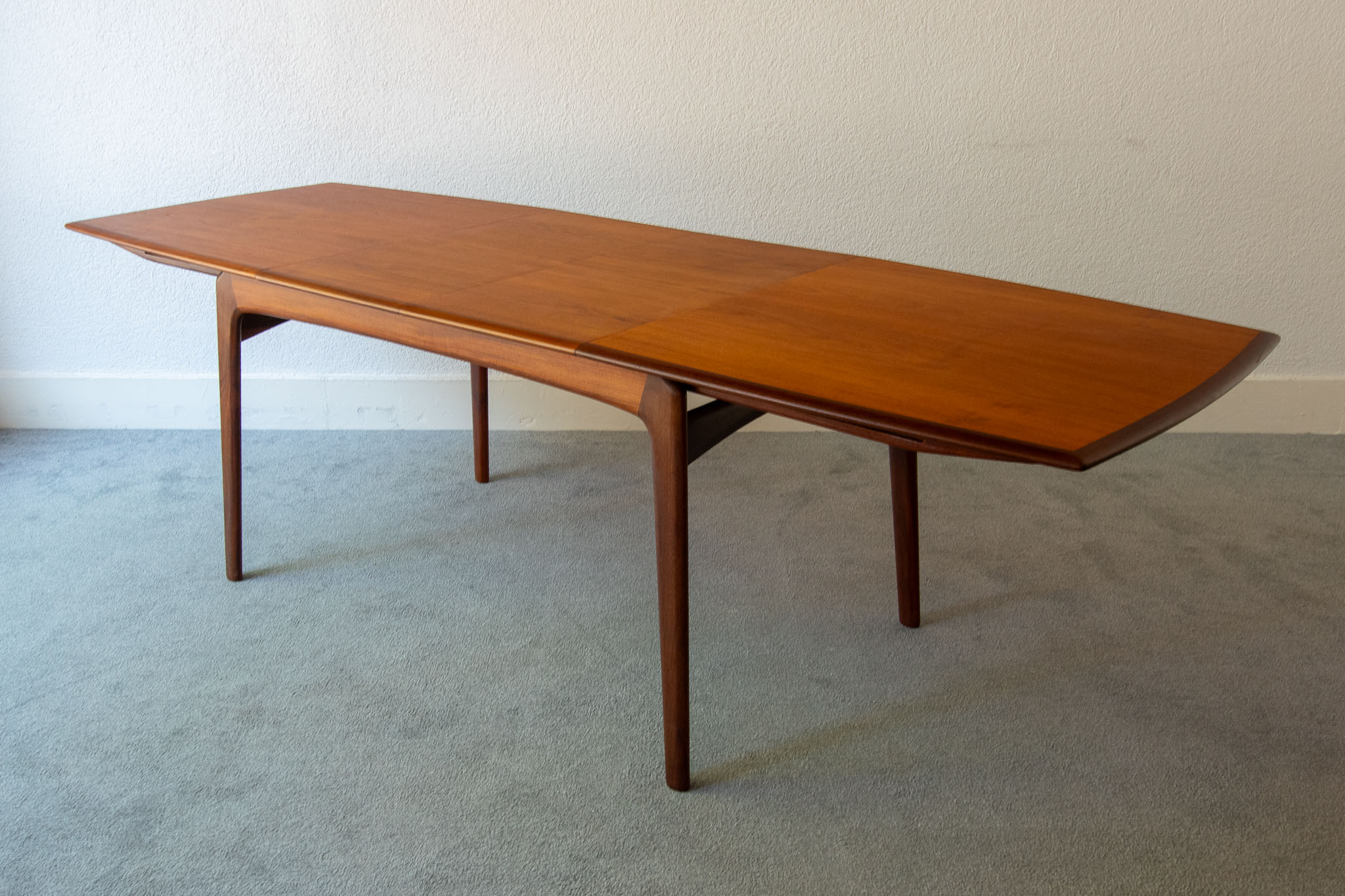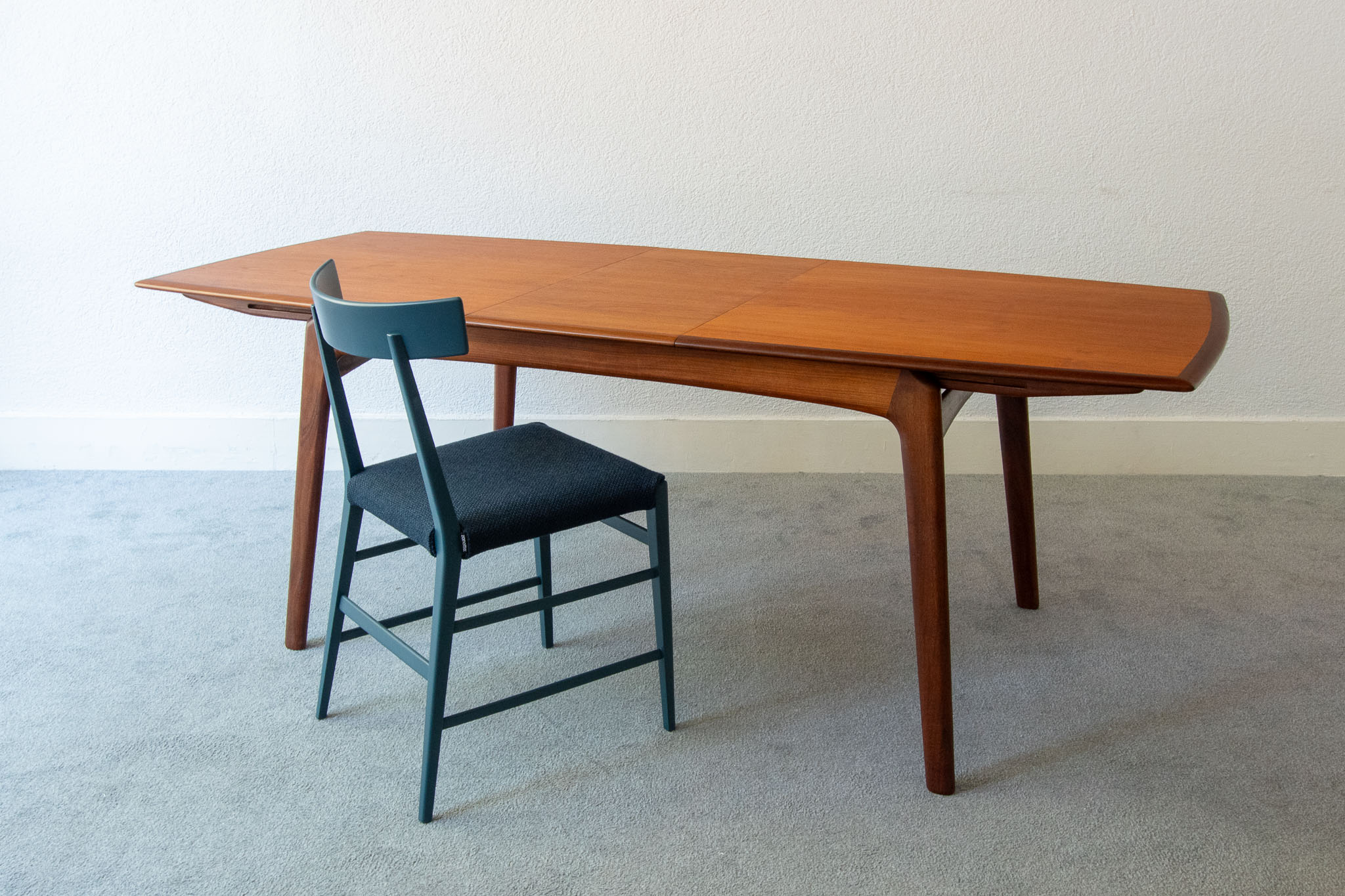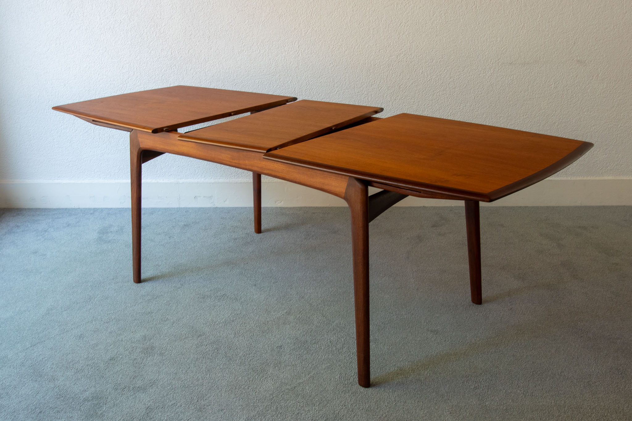 Rare teak extendable table by Arne Hovmand-Olsen, for Mogens Kold, Denmark, 1950s.