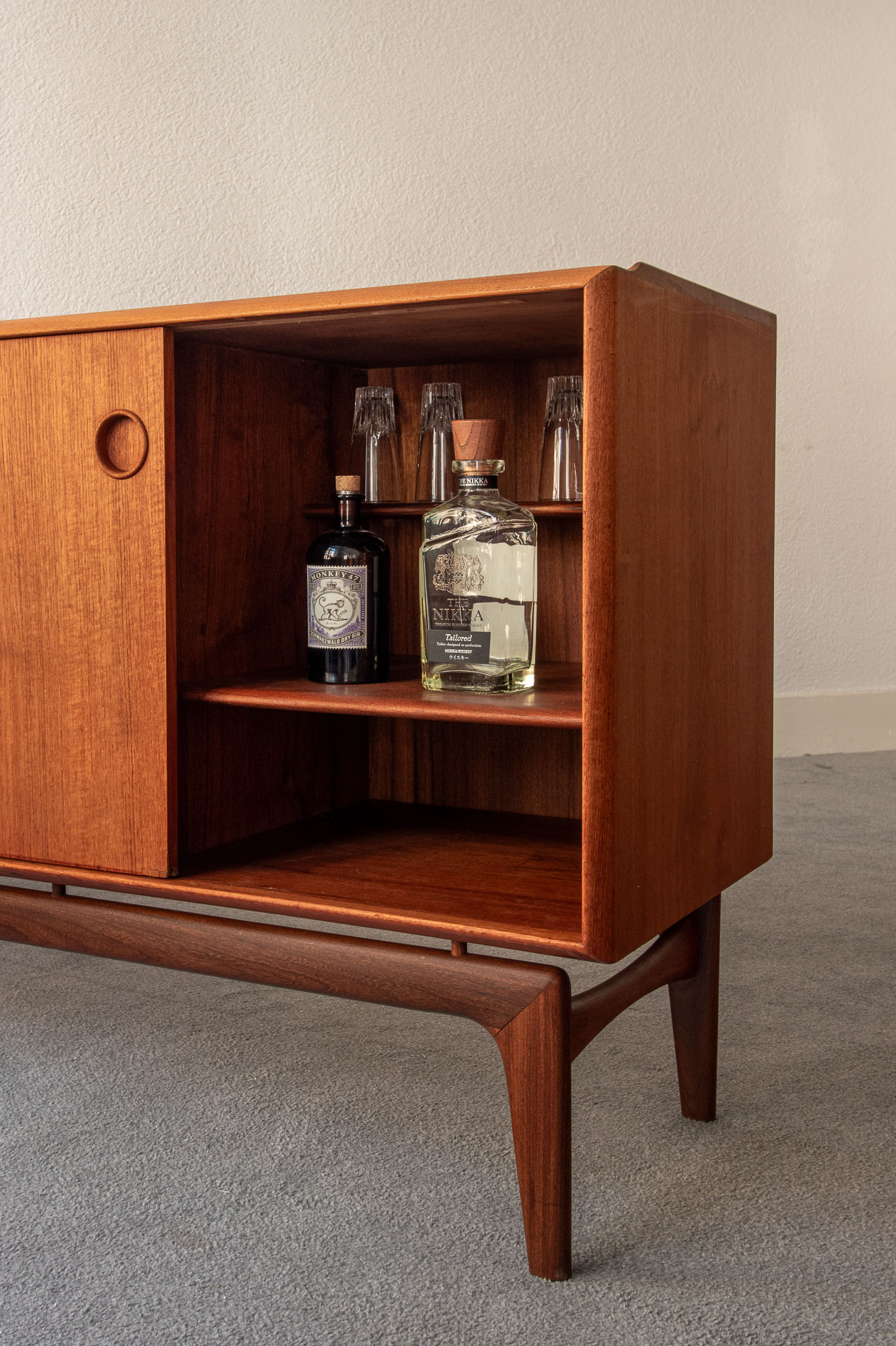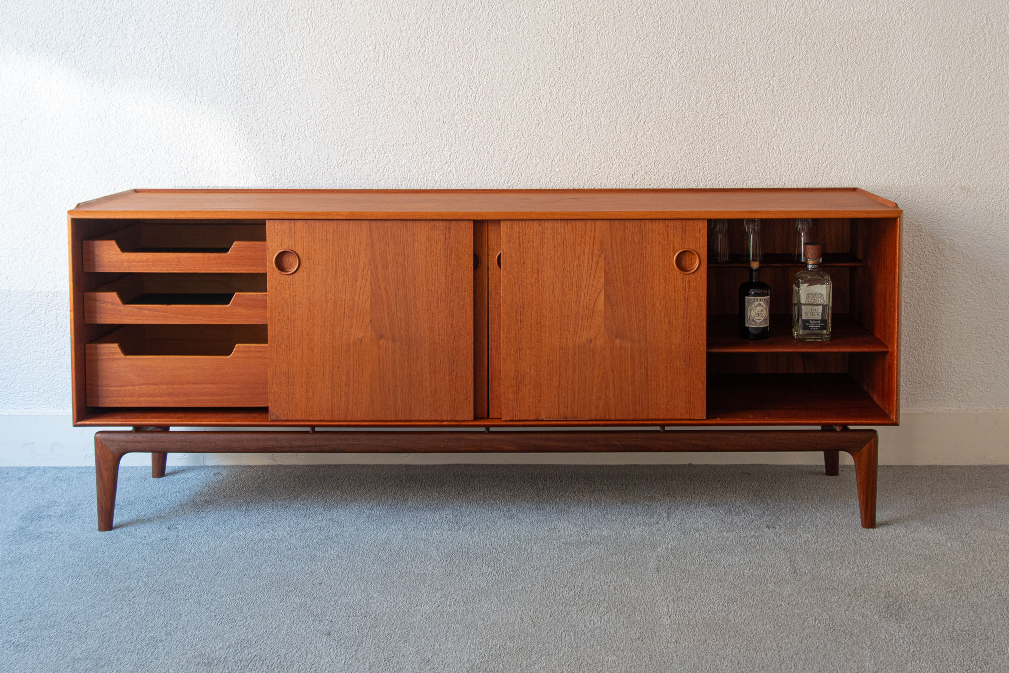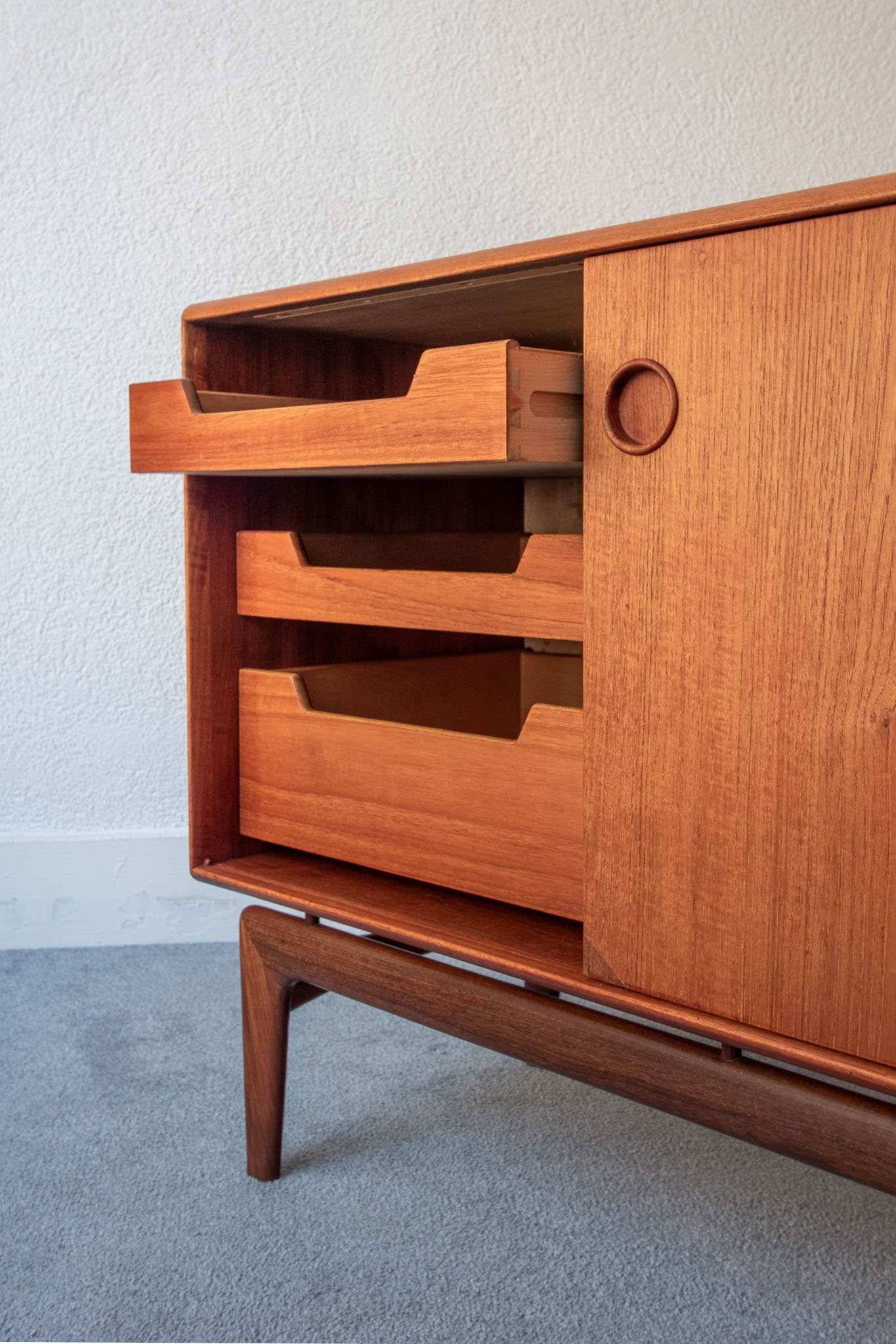 A rare teak sideboard by Arne Hovmand-Olsen, for Mogens Kold, Denmark, 1950s.