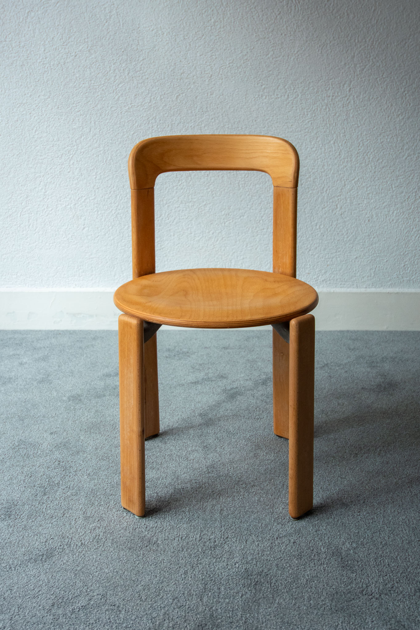 The decisive innovation of this chair lies in the unique aluminium connection system that links the legs to the seat without screws. Incredibly sturdy, after more than 40 years of use in a restaurant, they are still as stable as ever. The surface finish has been slightly restored while retaining its patina.
