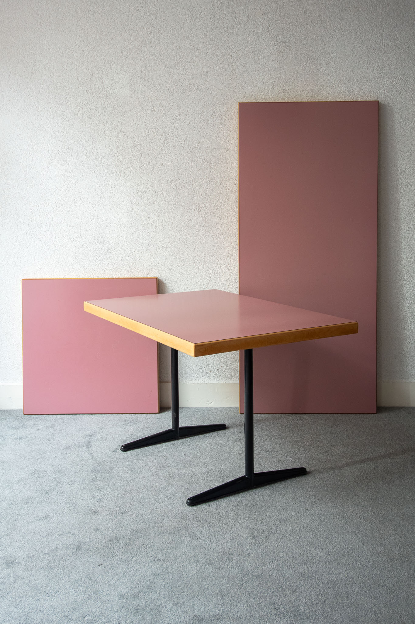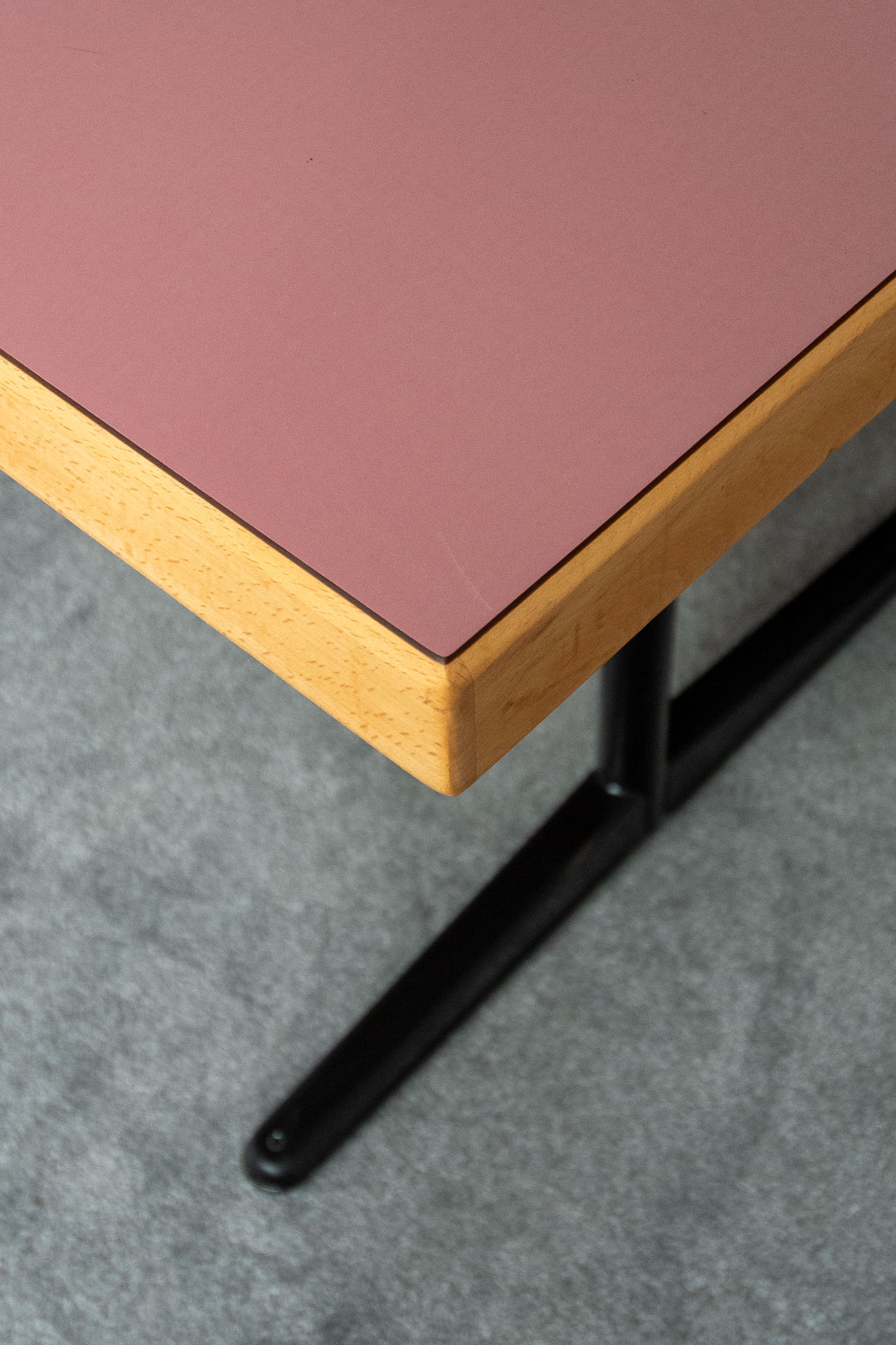 Purple melamine-coated beech wood, steel legs by OPO Oeschger SA (supplier of furniture fittings for professionals in Switzerland since 1926).