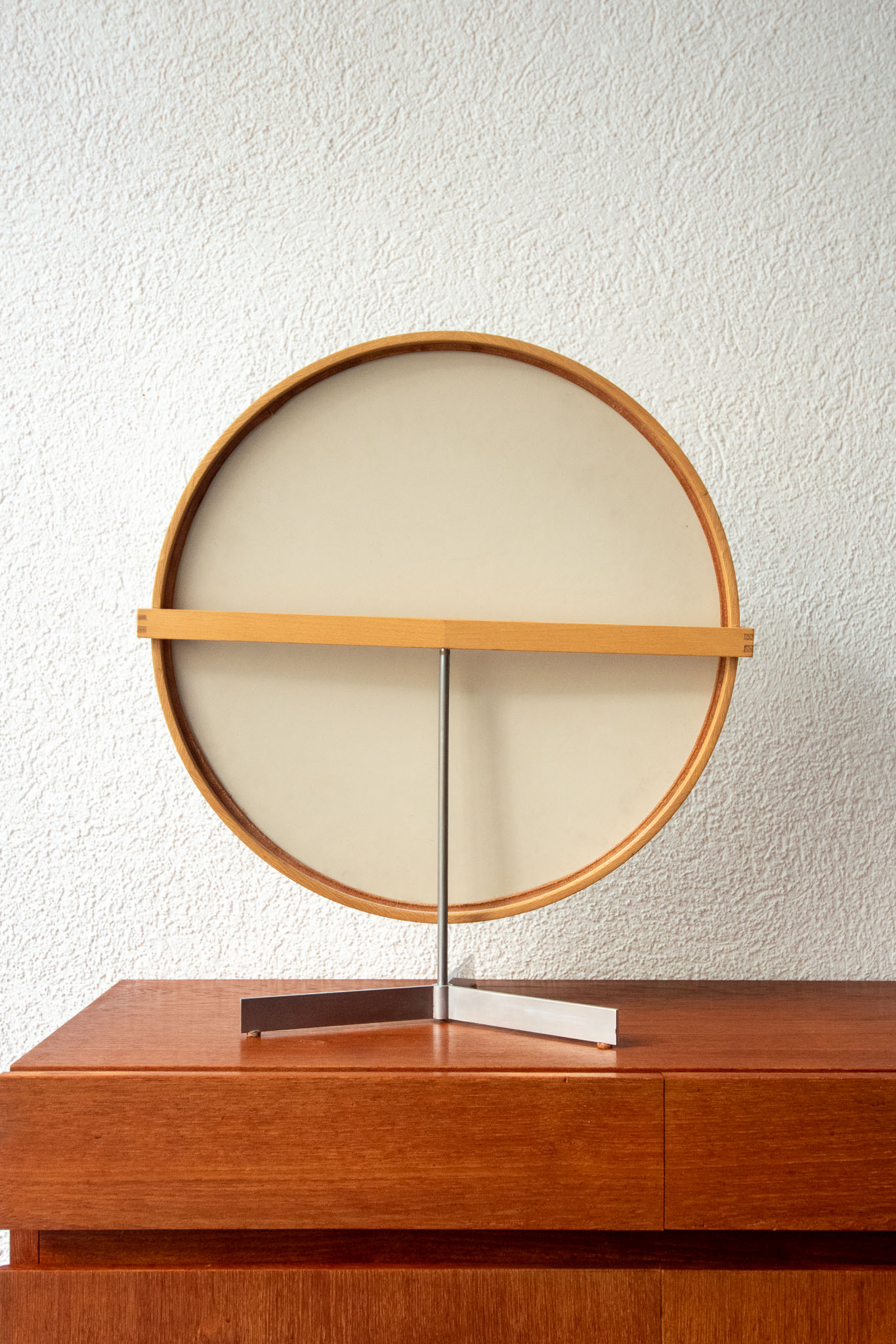 Uno & Östen Kristiansson mirror, for Luxus, Sweden, 1960s. Oak and brushed steel.