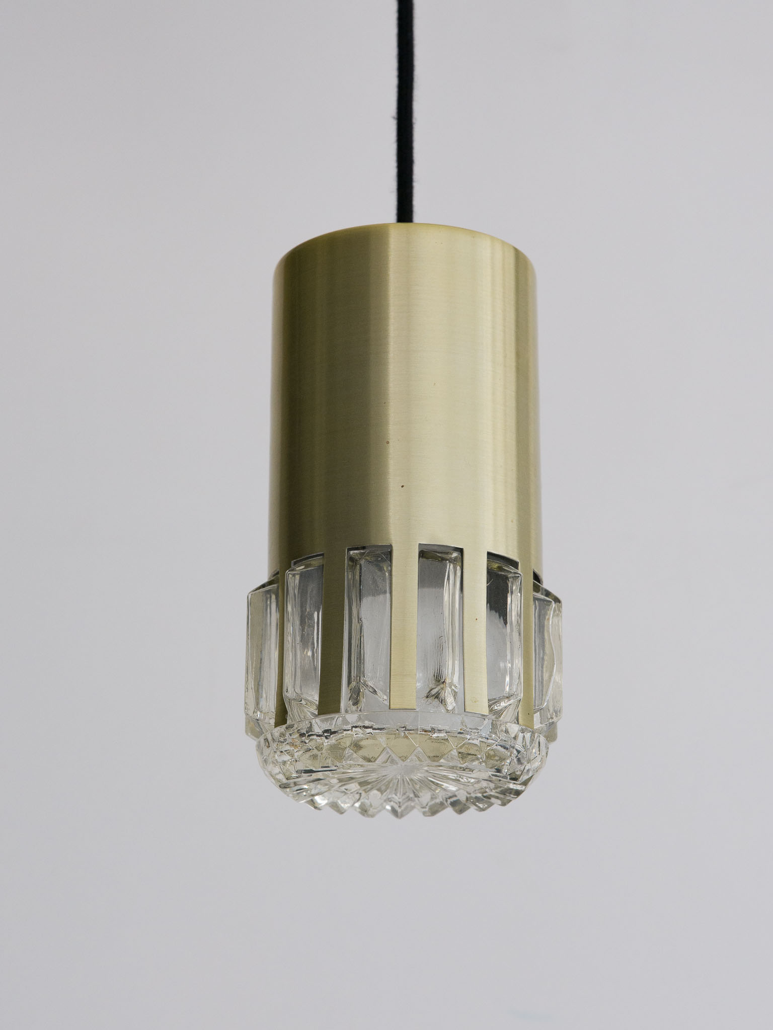 Small Danish pendant lamp from the 1960s, golden aluminium and glass.