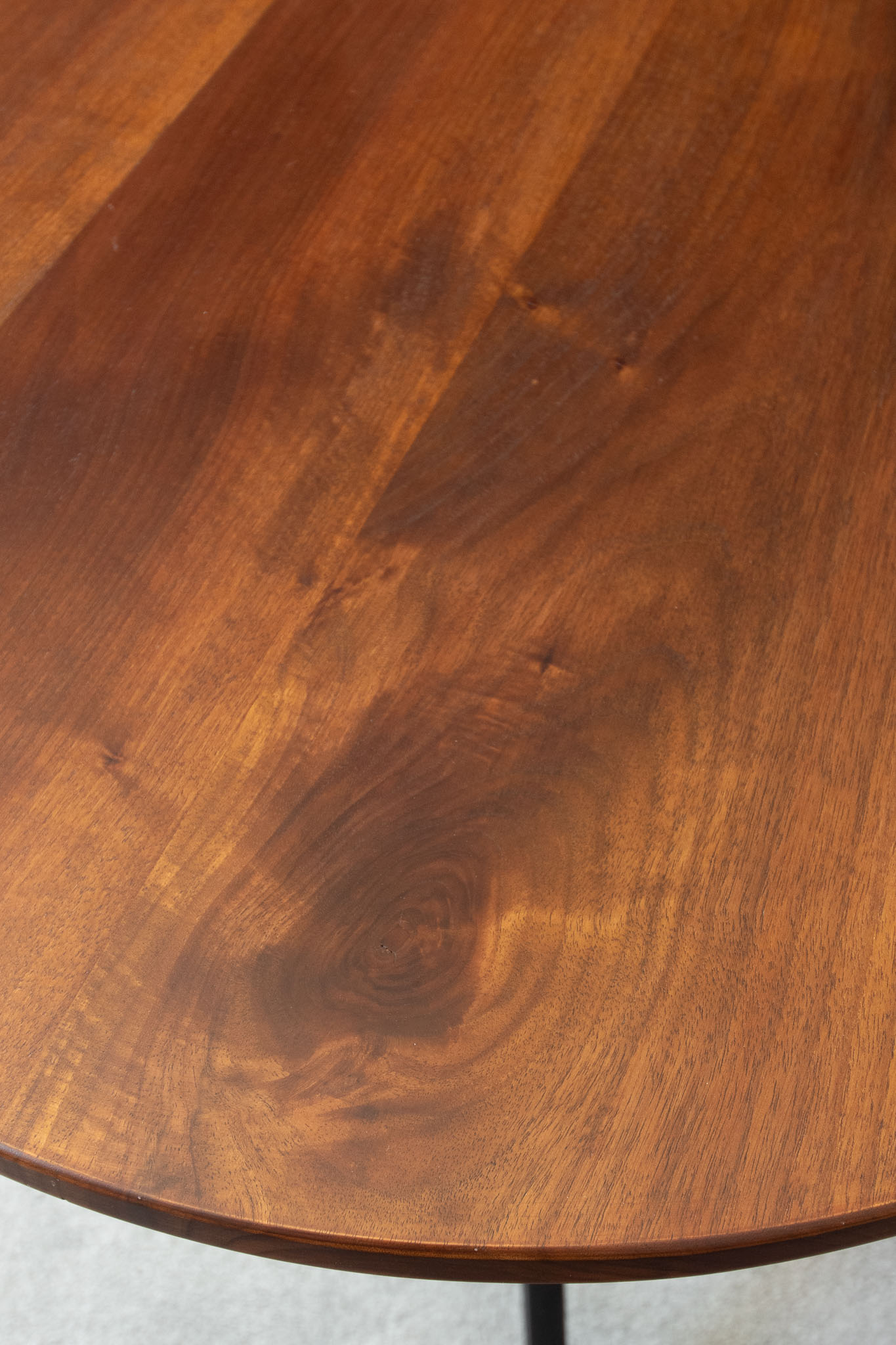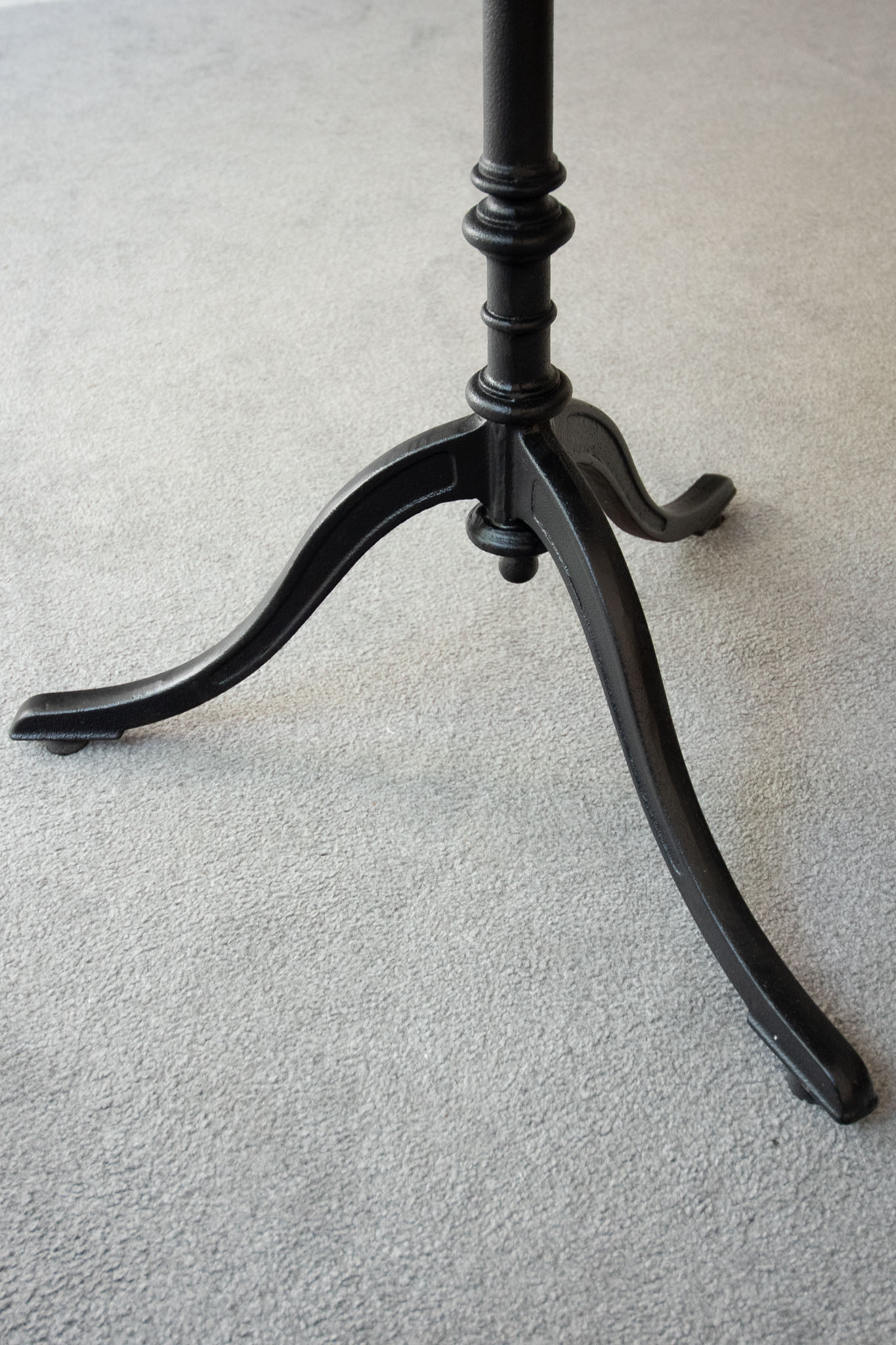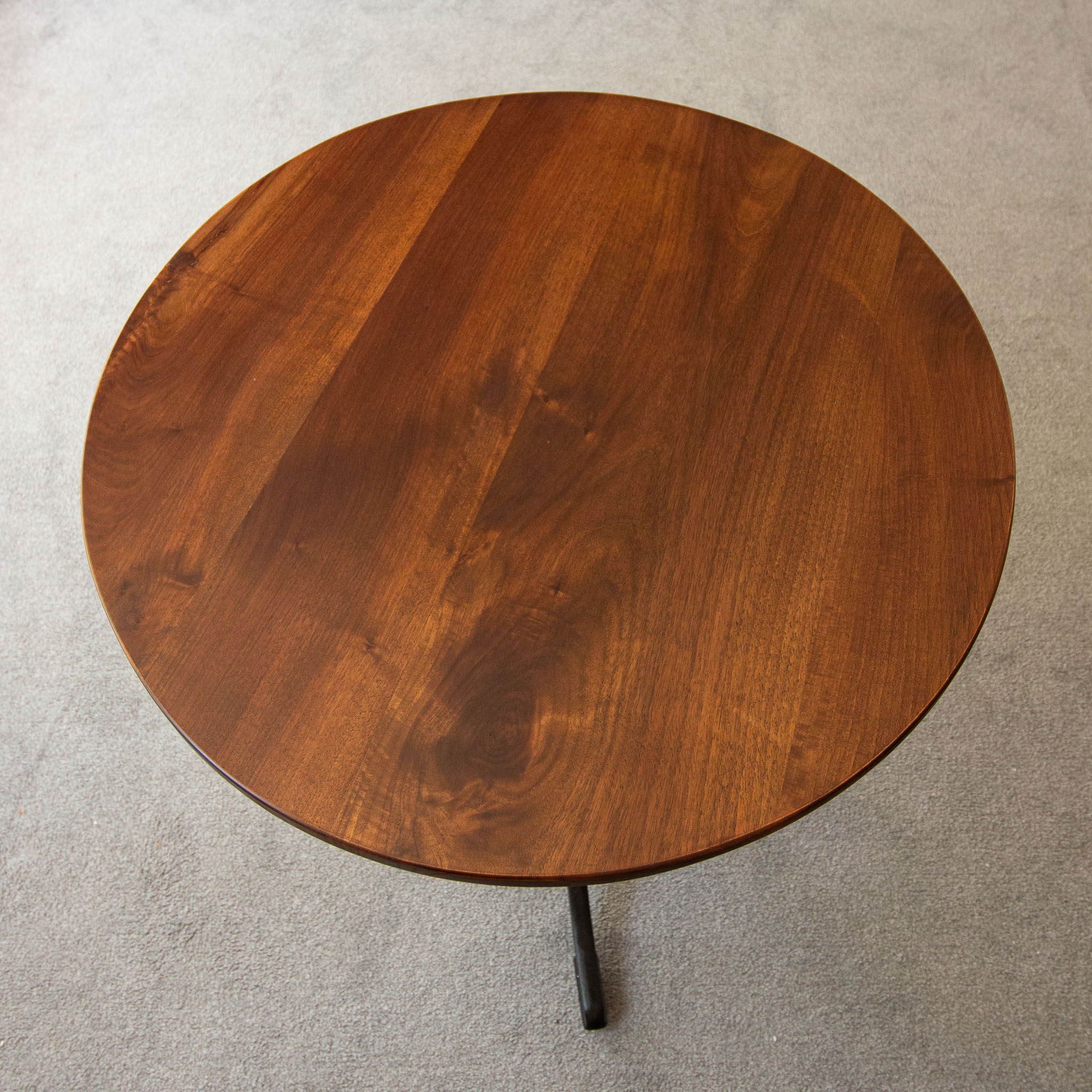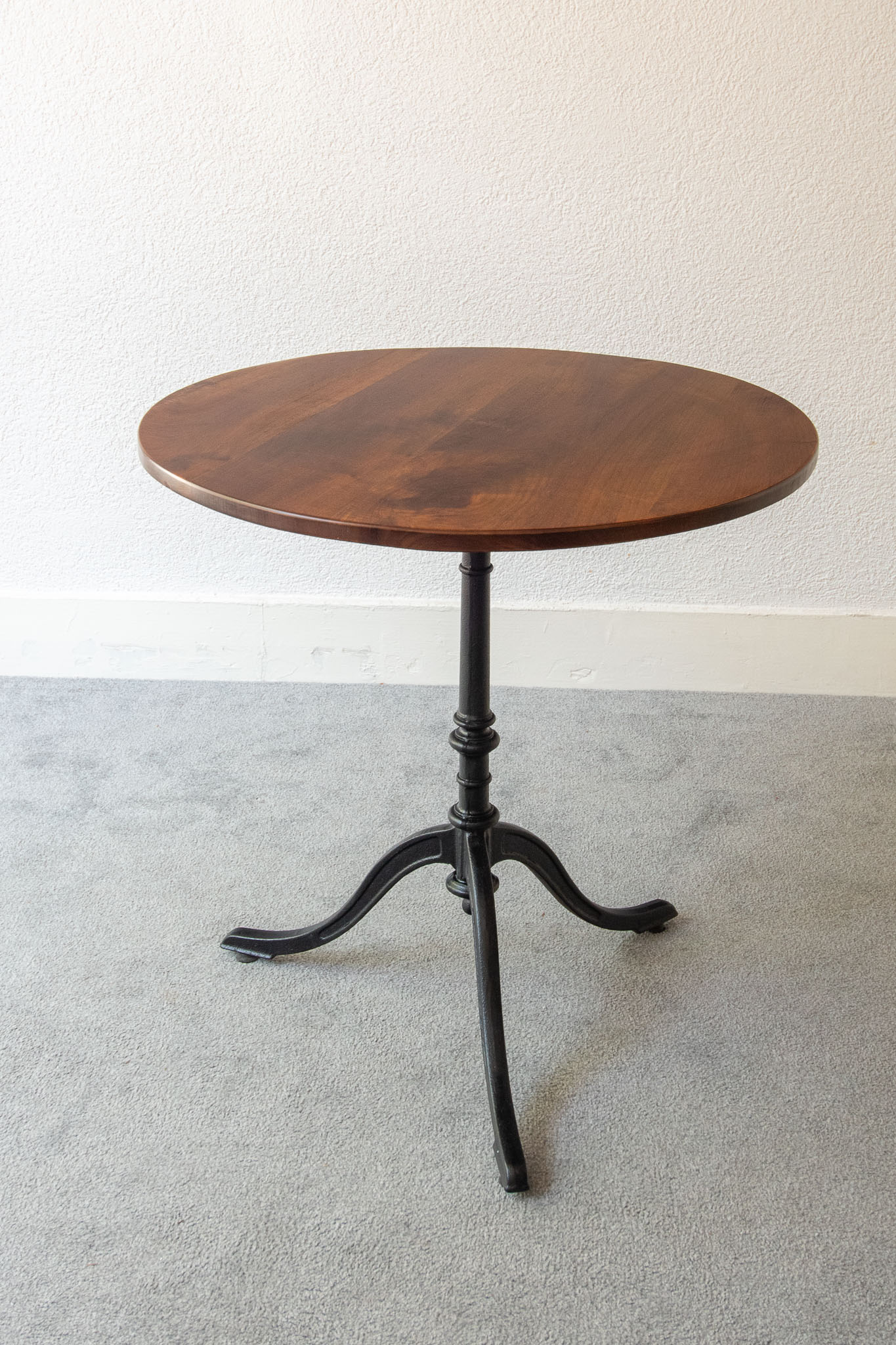 Early 20th-century bistro table, walnut top and cast-iron legs.
