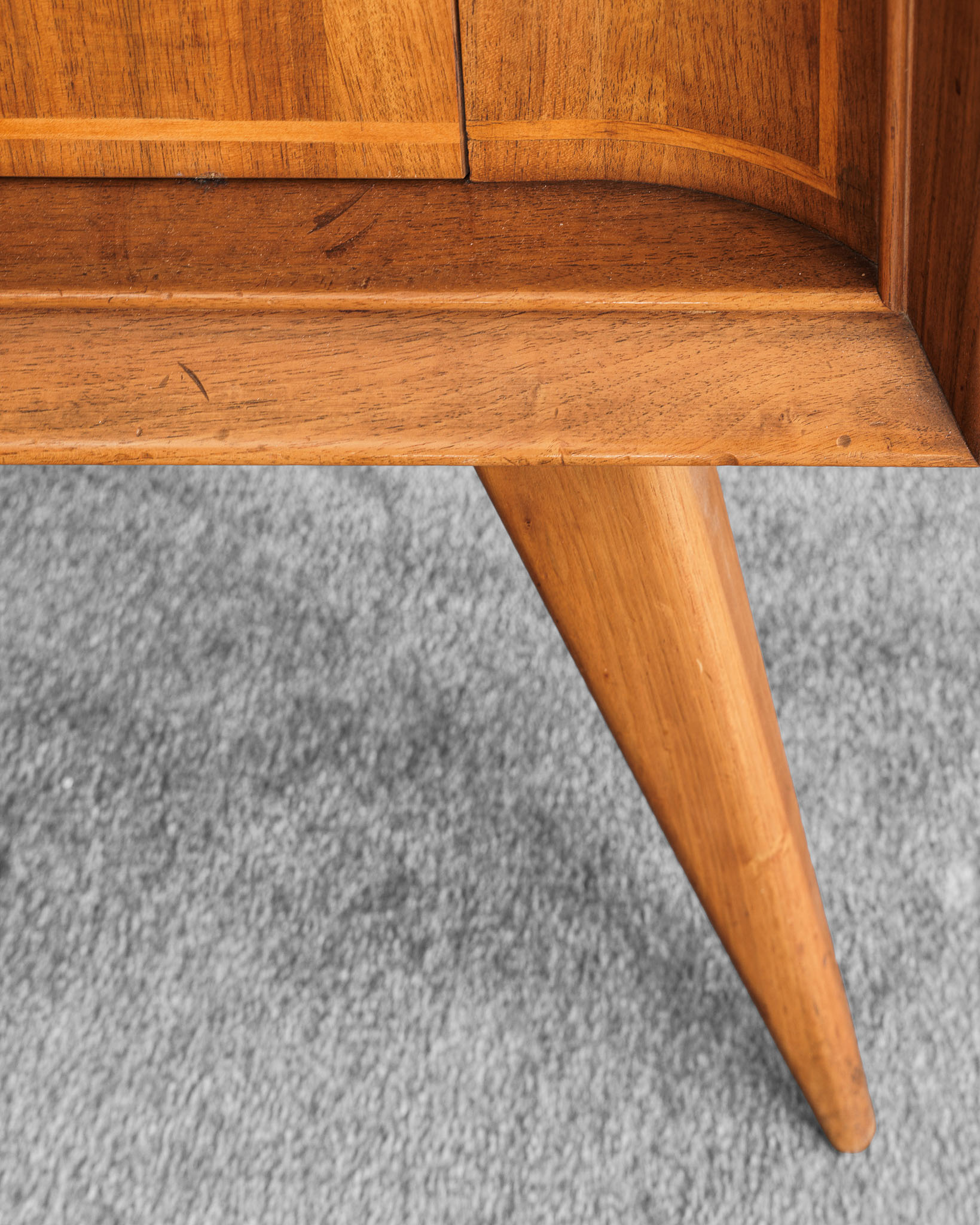 Bar / meuble de rangement en noyer et miroir rosé, Suisse années 40.