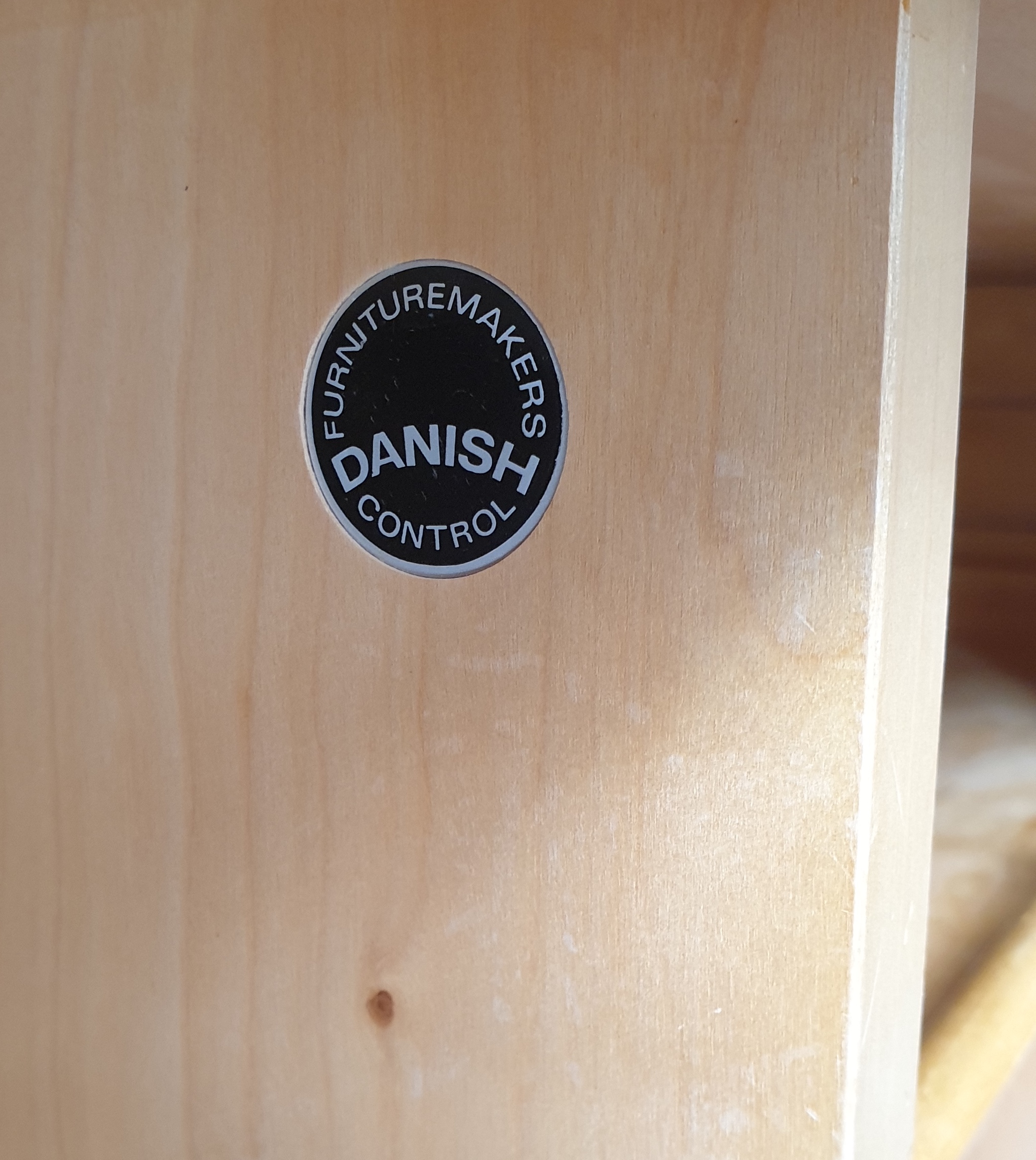 Estampille de l’éditeur à l’arrière et plaquette « danish cabinet maker control » à l’intérieur.