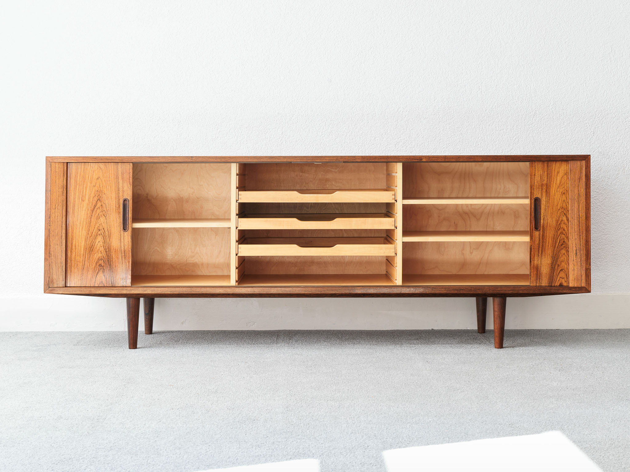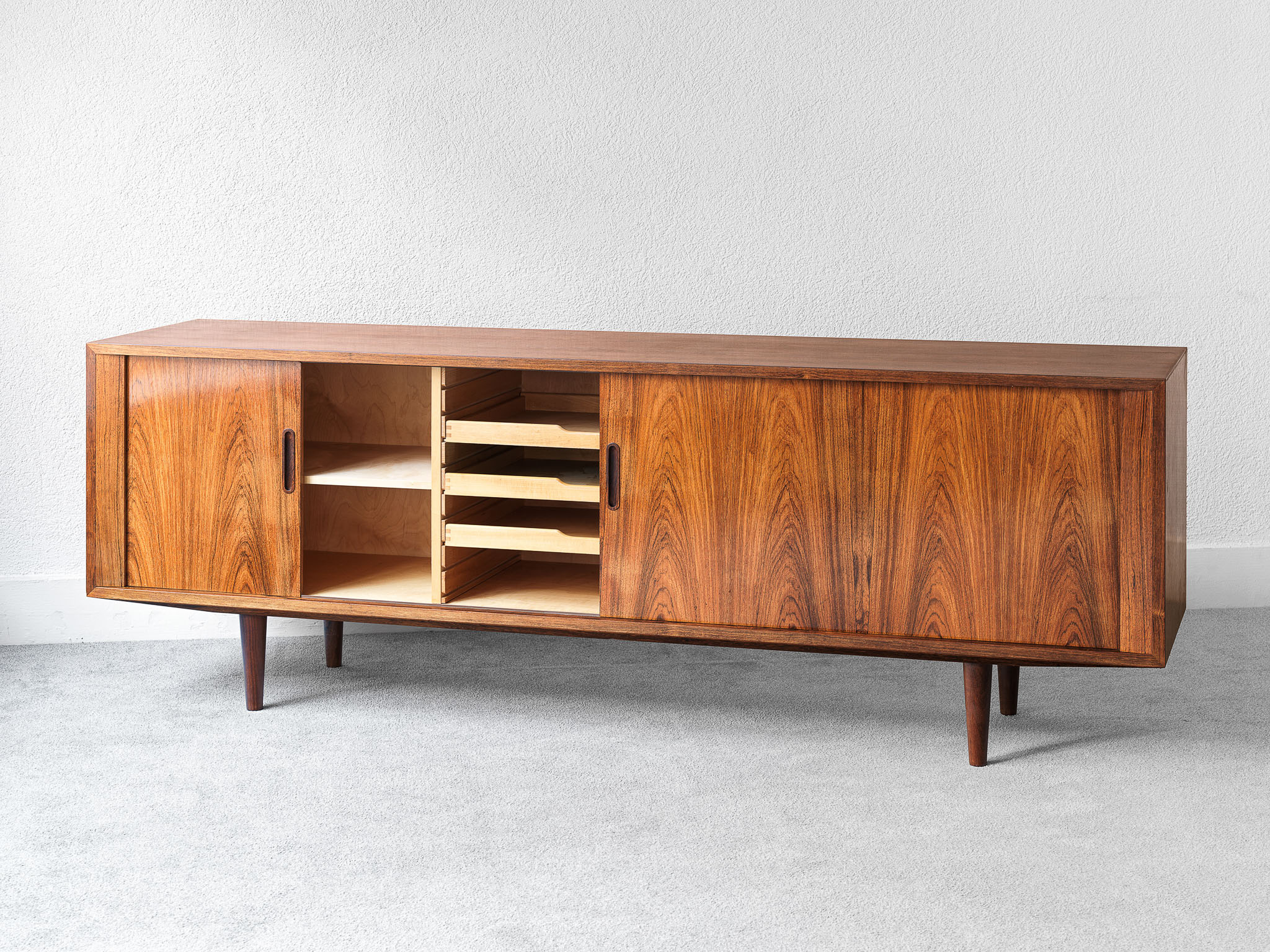 Rare et spectaculaire sideboard en palissandre de Rio de Carlo Jensen pour Poul Hundevad.