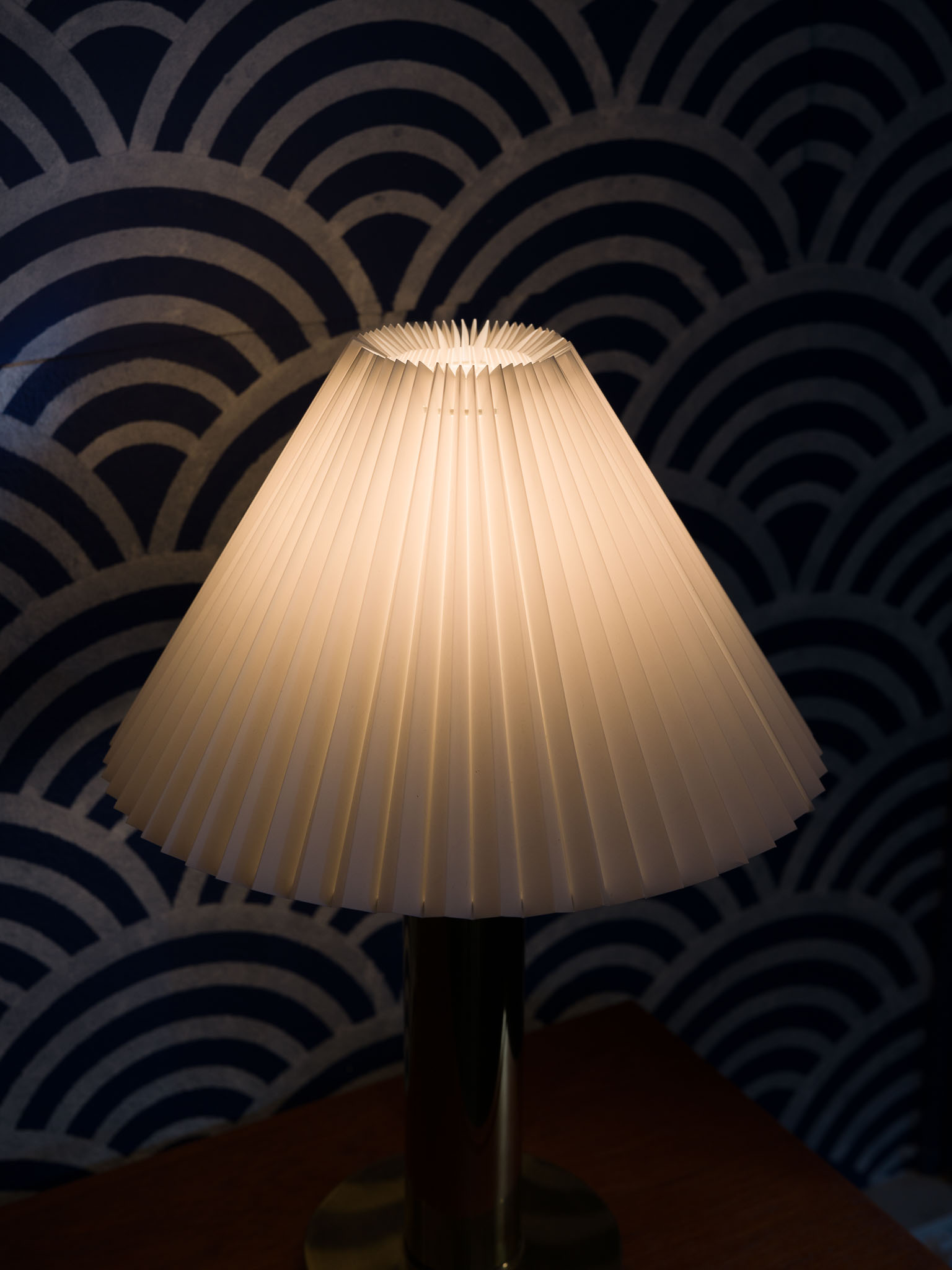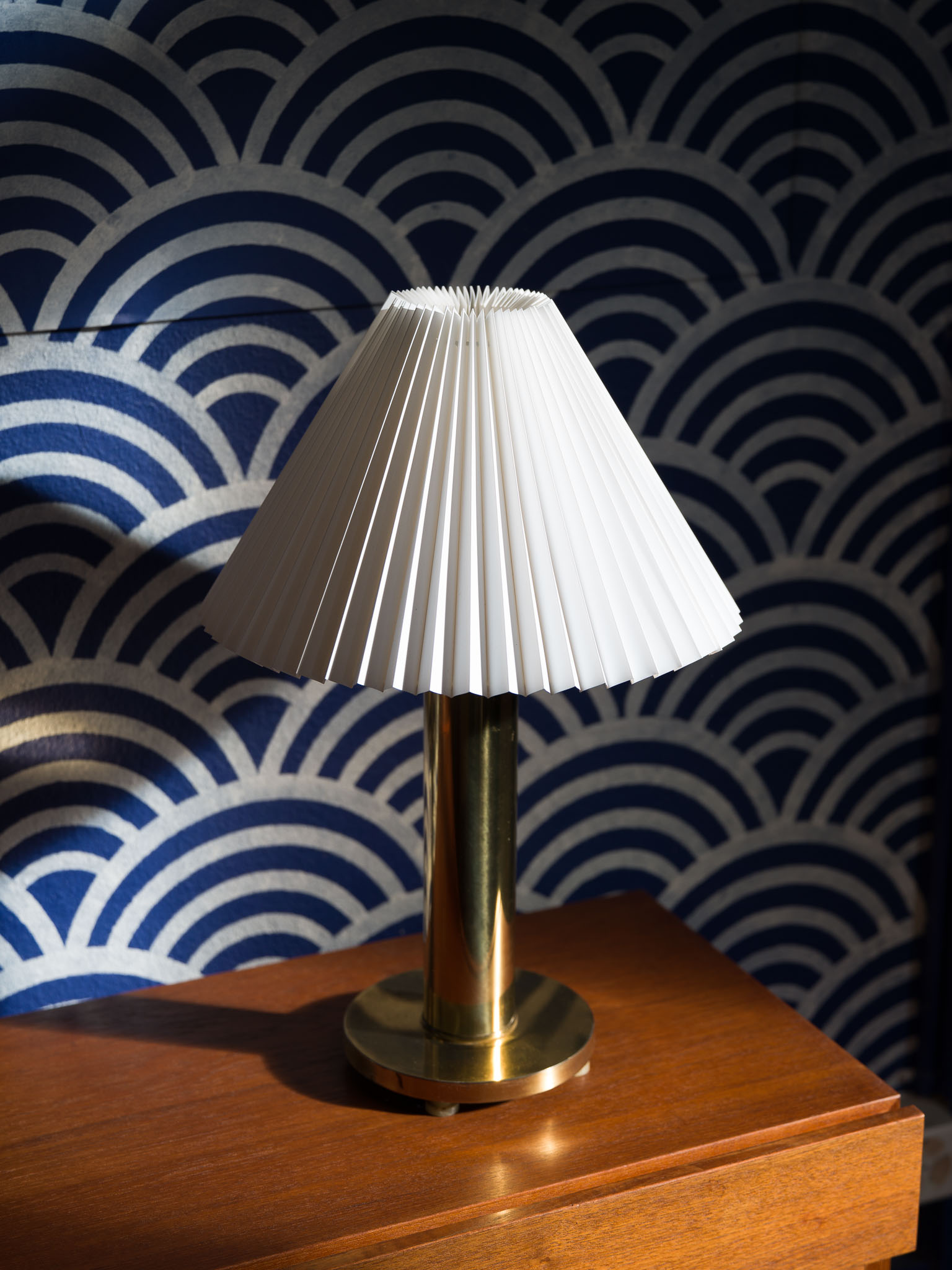 Lampe « Frandsen », Danemark années 60, pied laiton et abat jour plissé.