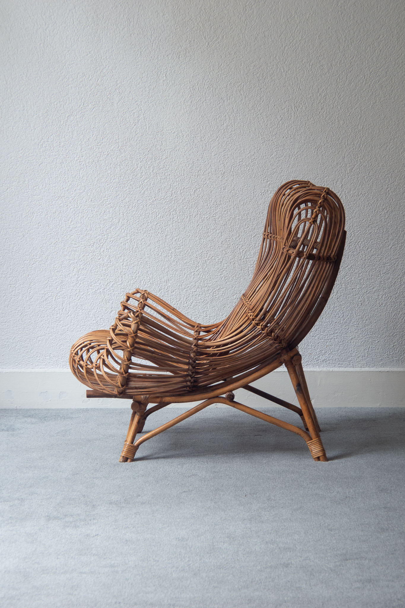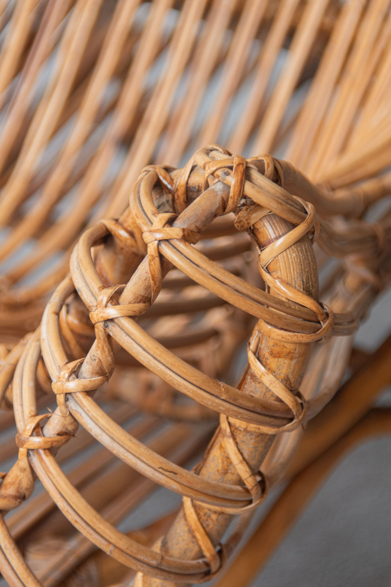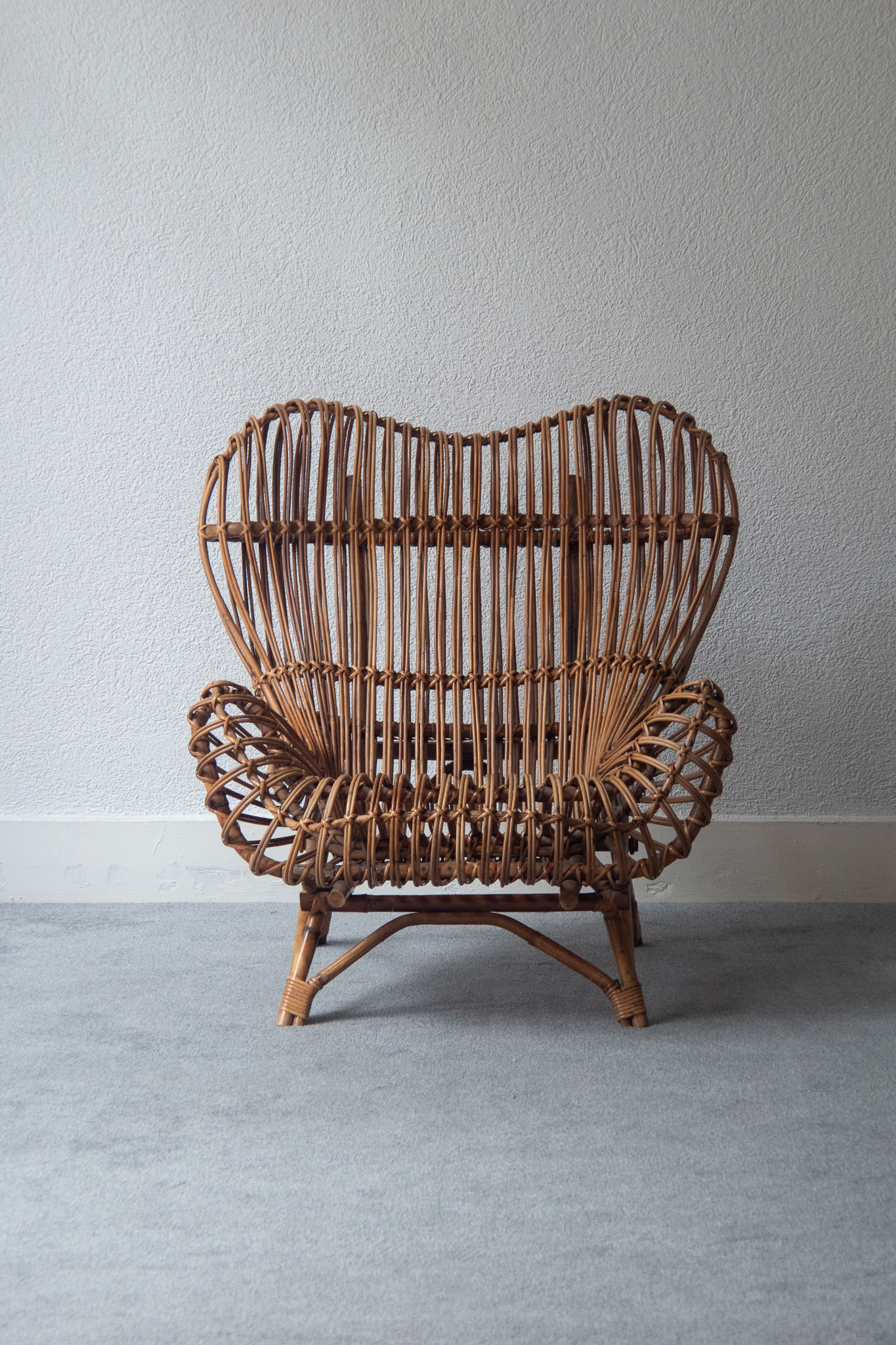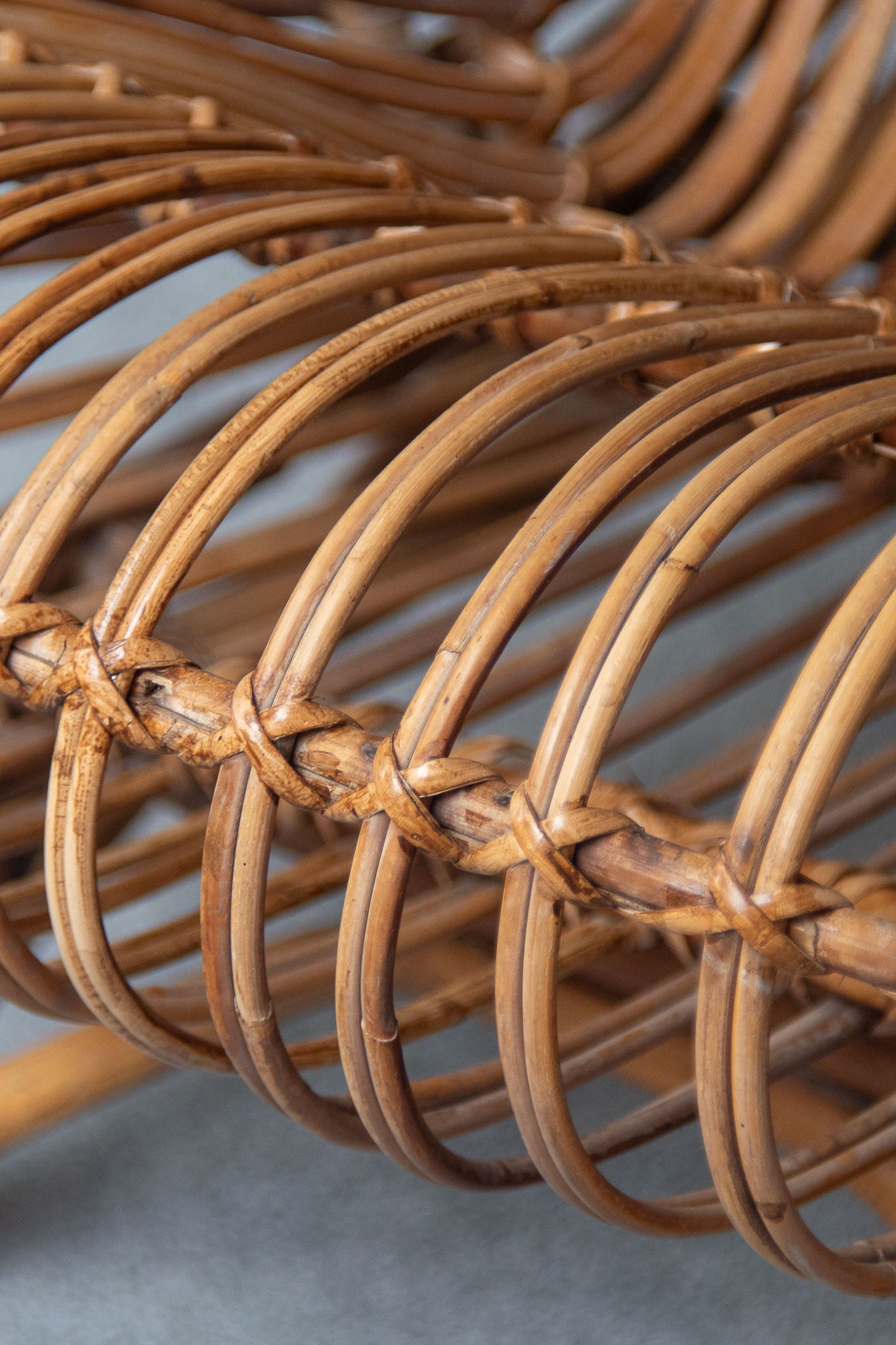 Rare ancienne édition du fauteuil « Gala » de Franco Albini, pour Vittorio Bonacina, 1951, en rotin et bambou.