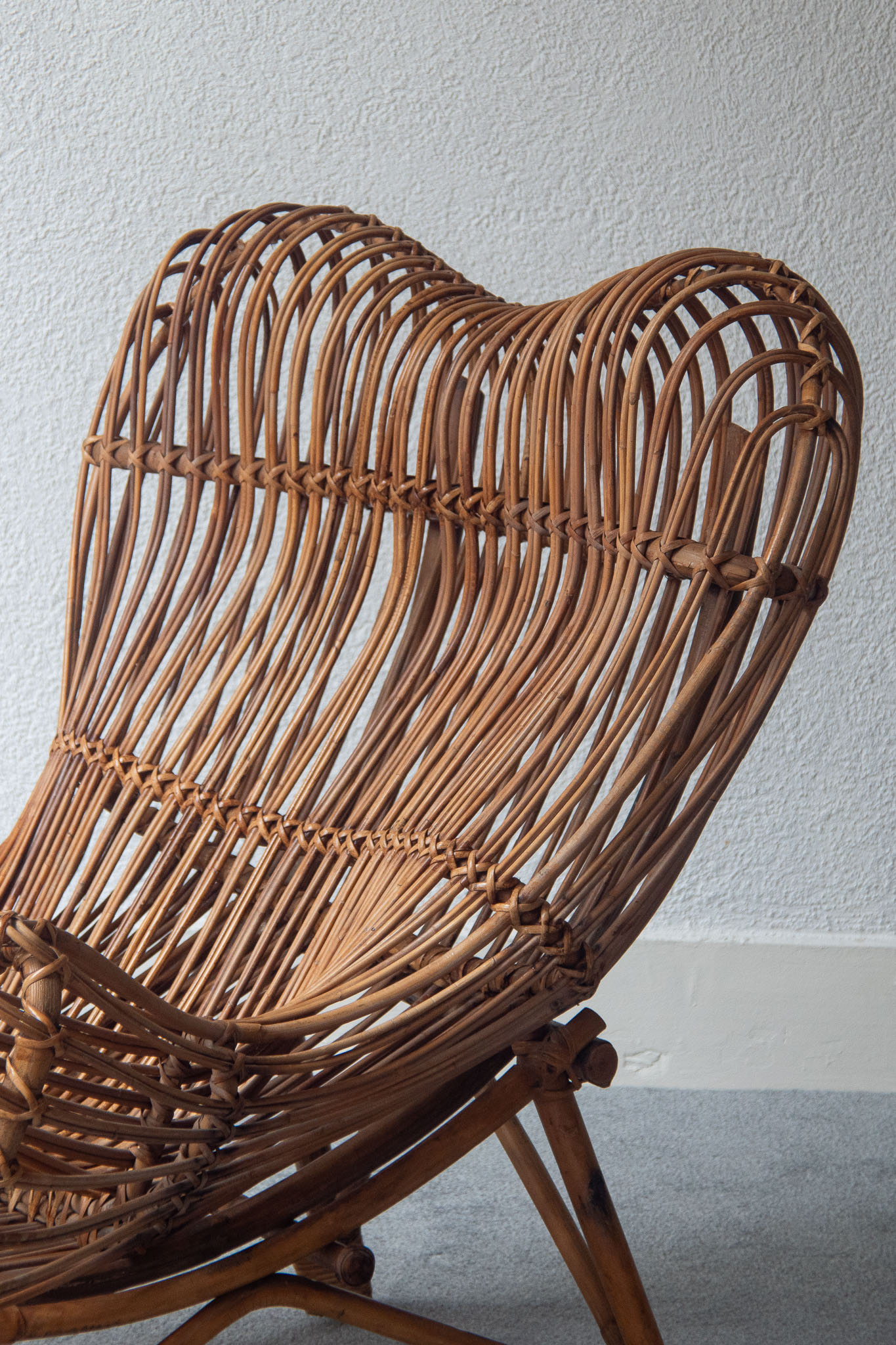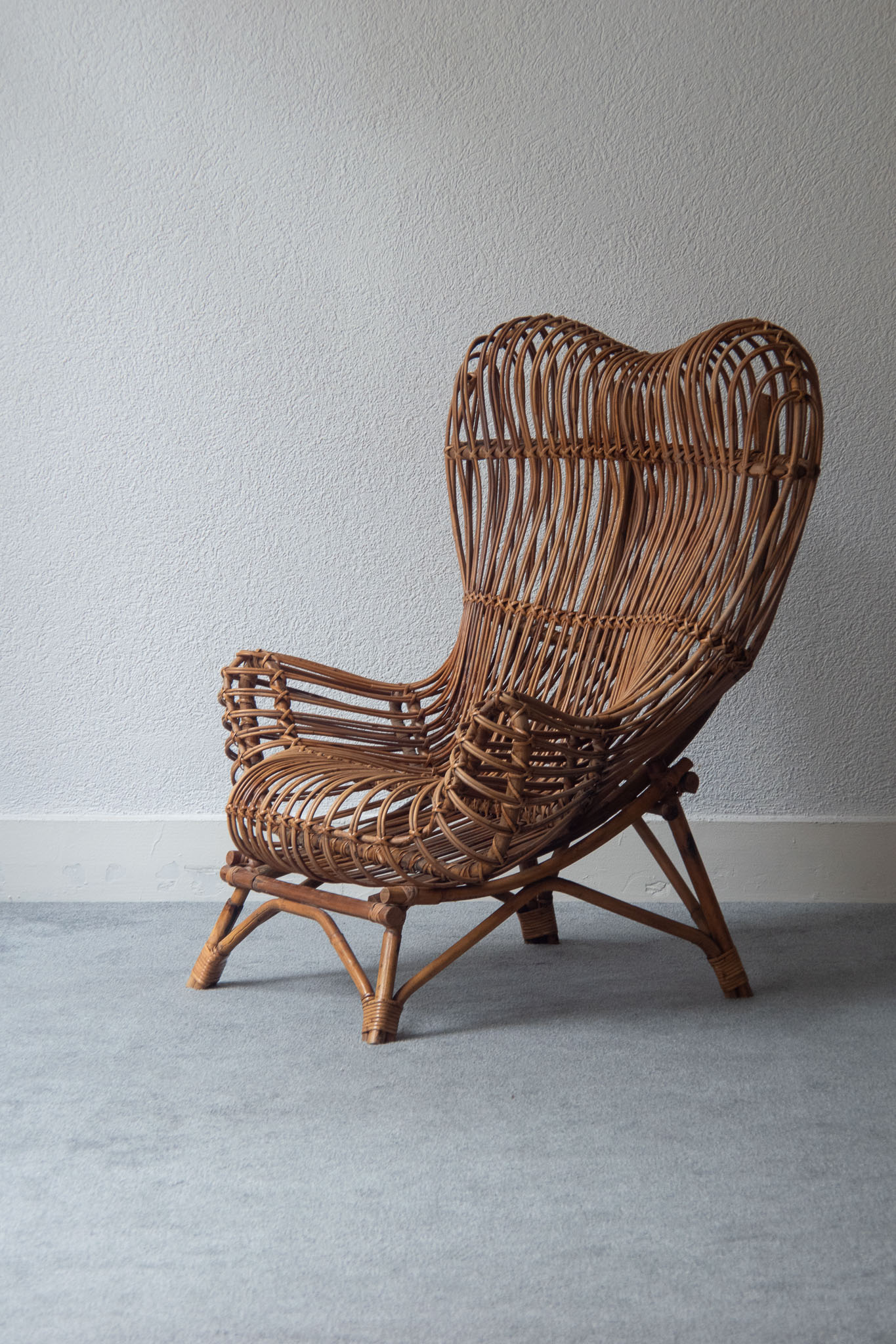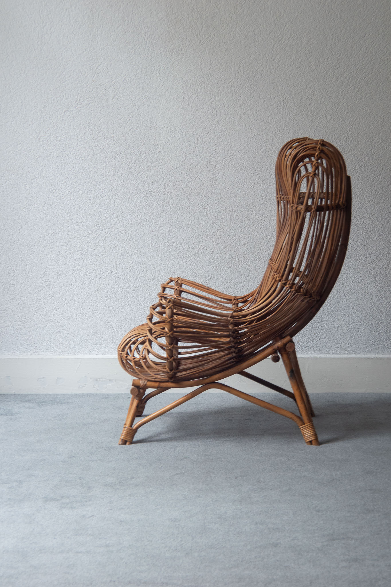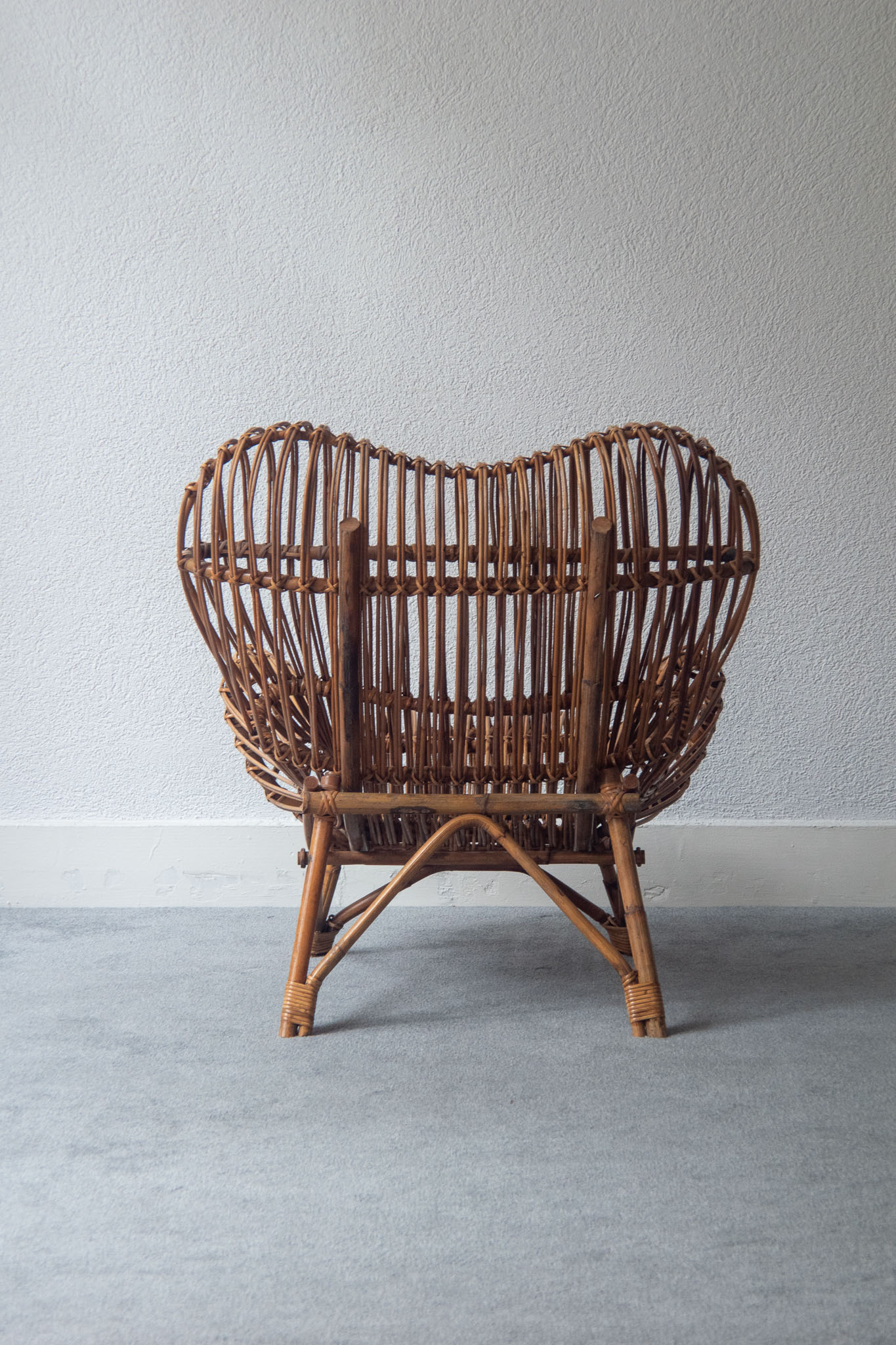 Rare ancienne édition du fauteuil « Gala » de Franco Albini, pour Vittorio Bonacina, 1951, en rotin et bambou.