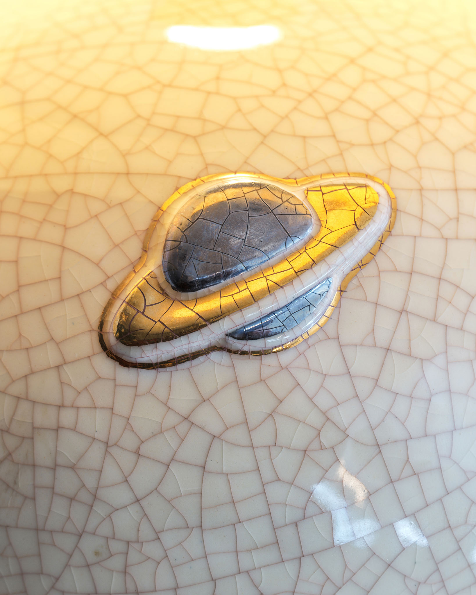 Manufacture des Emaux de Longwy (depuis 1798 ) France, grande lampe en porcelaine au décor de Saturnes.