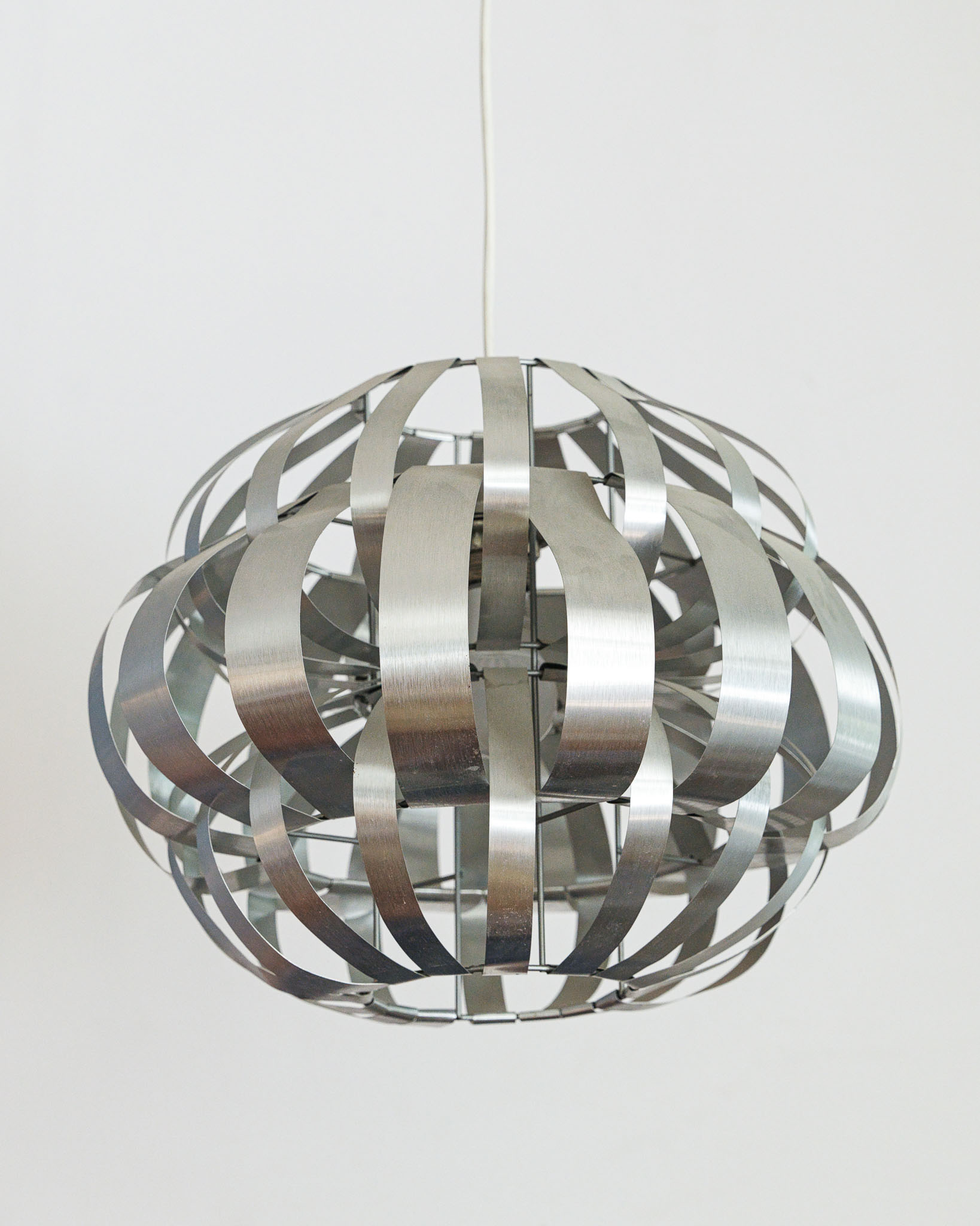 Suspension composée de lamelles en aluminium brossé, attribuée à Max Sauze, années 60.